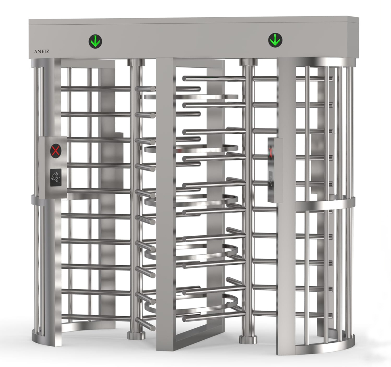 The FHT20 double lanes full height turnstileis a need for a high degree of security without manned monitoring. Suitable for indoor and outdoor installations, the range of full height turnstiles come in a variety of designs for pedestrian, wheel chair users access entrance security. In conjunction with card readers they can be used to control access reliably without the need for personnel, ensuring controlled passage of individuals from one side to the other in the permitted direction.